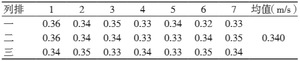 表1 連接外排管道時的下降氣流流速的檢測數據